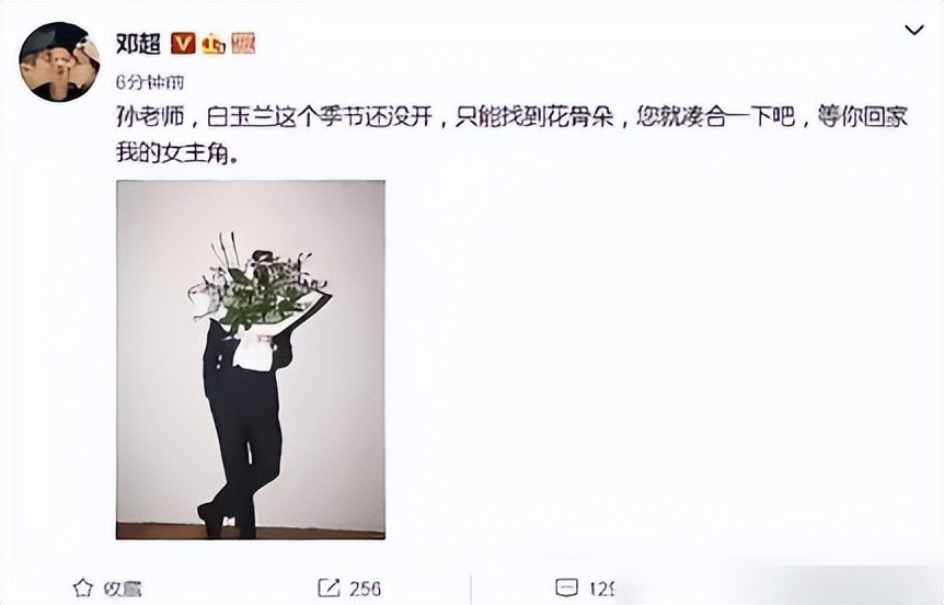 2012年孙俪错失白玉兰奖时,邓超发博手持鲜花写道:“等你回家我的女主角”,用独特方式抚慰失落的心情。