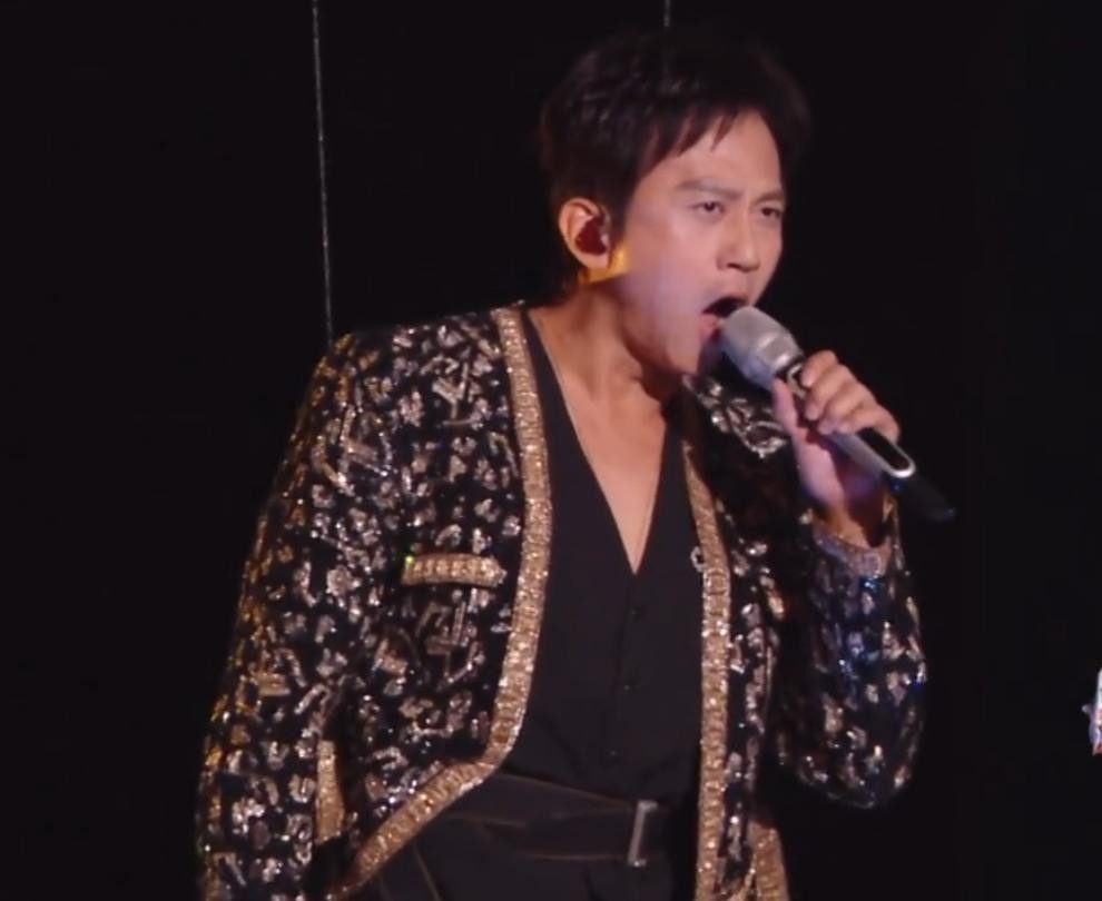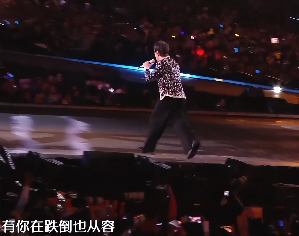 更令人惊叹的是,他的体能状态完全不逊于年轻偶像,在舞台上奔跑跳跃、气势全开。