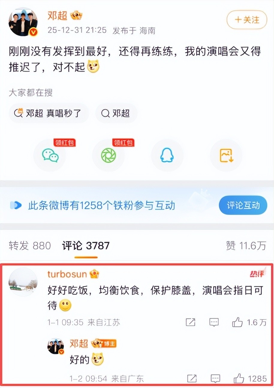 尽管舞台呈现广受赞誉,但晚会结束后,邓超却在社交平台发文表示未能发挥理想水平,并宣布个人演唱会将延期举行。
