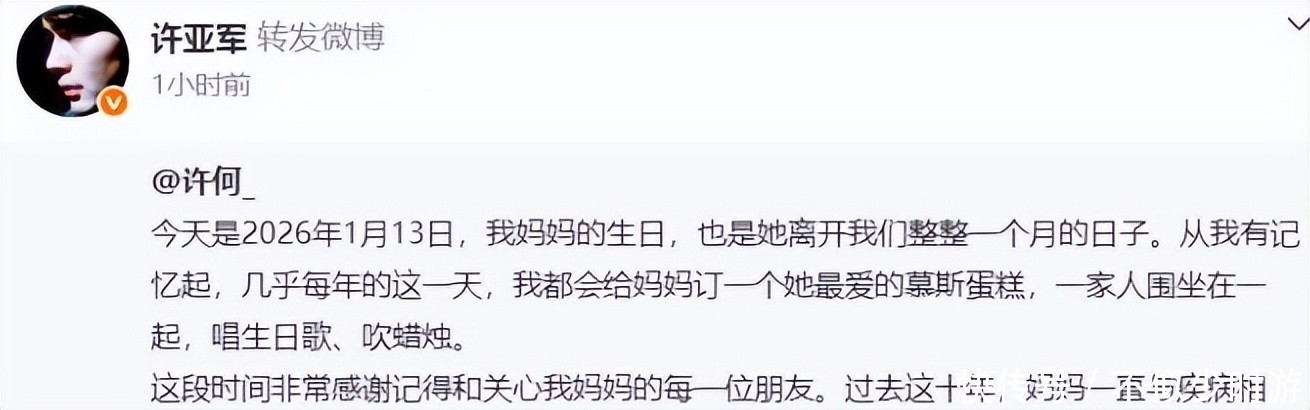 2026年1月13日,正值何晴诞辰纪念日,也是她离世满月之日。儿子许何发布的纪念长文,终于让这个长久沉默的家庭发出了属于自己的声音。