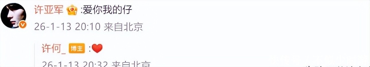 自从许何的悼文发布以来,许亚军第一时间留言回应:“爱你我的崽”,并转发原文表达哀思。