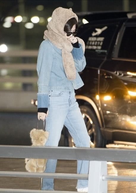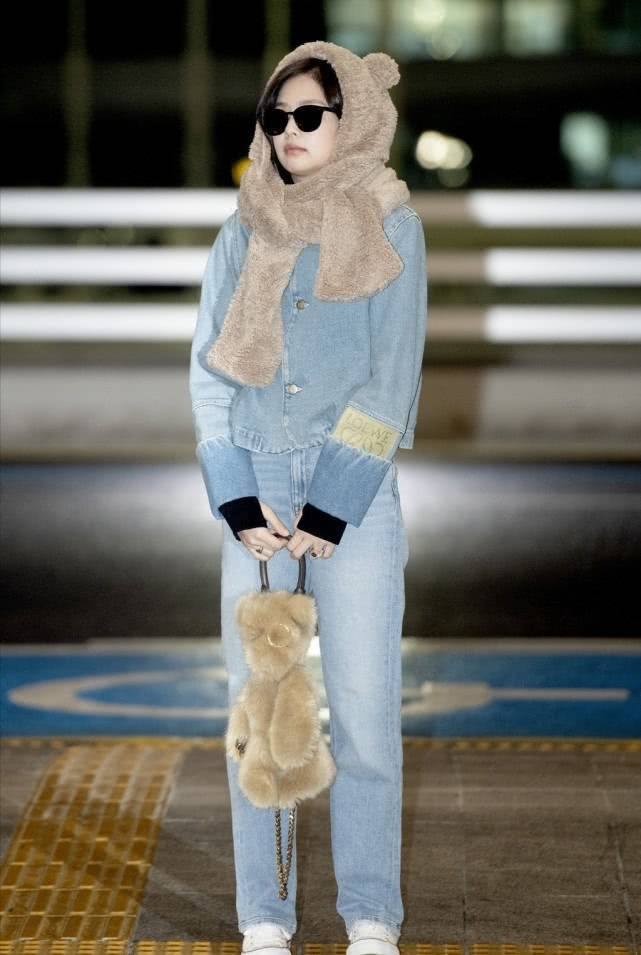 不得不说,金智妮穿牛仔套装搭配“小熊围巾”,被萌到了,和舞台上的她完全不一样呢!她这款围巾和帽子合二为一,可以起到保暖的效果,在秋冬季节戴还是挺不错的。身穿的牛仔装是很百搭的款式,也适合不同年龄段的人穿。